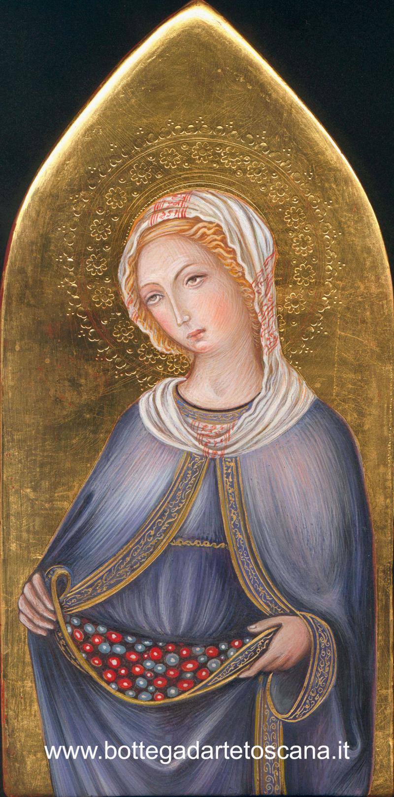 Little icon of Santa Dorotea. Work drawn from Sano di Pietro, Sienese painter of the Early Renaissance.